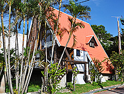 宿自慢ポイント パームツリーに囲まれたオレンジ屋根が南国リゾートを感じさせます。